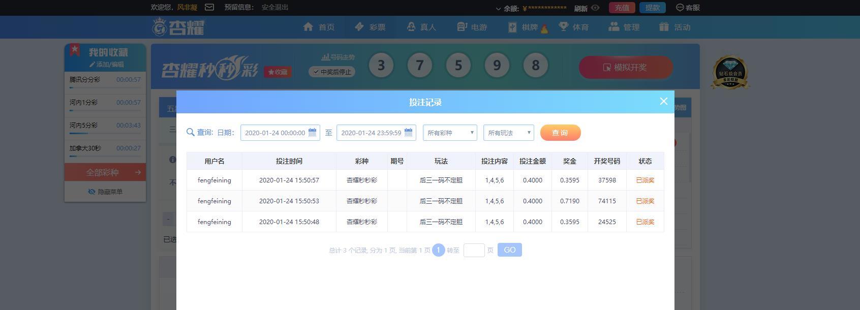 [讨论区] 1-24杏耀秒秒彩运气还可以 |