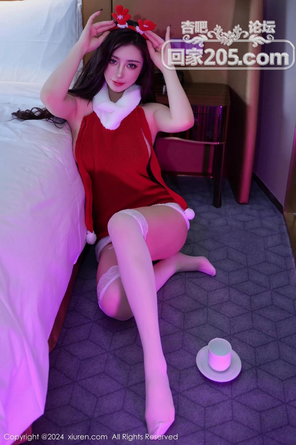 [美腿翘臀] 模特蕾蕾醒了没性感红色圣诞服饰配白丝袜秀丰满身材诱惑写真【50P】 |