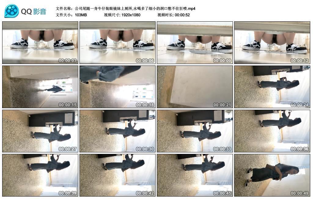 公司尾随一身牛仔装眼镜妹上厕所,水喝多了细小的洞口憋不住狂喷【00:52/XN】