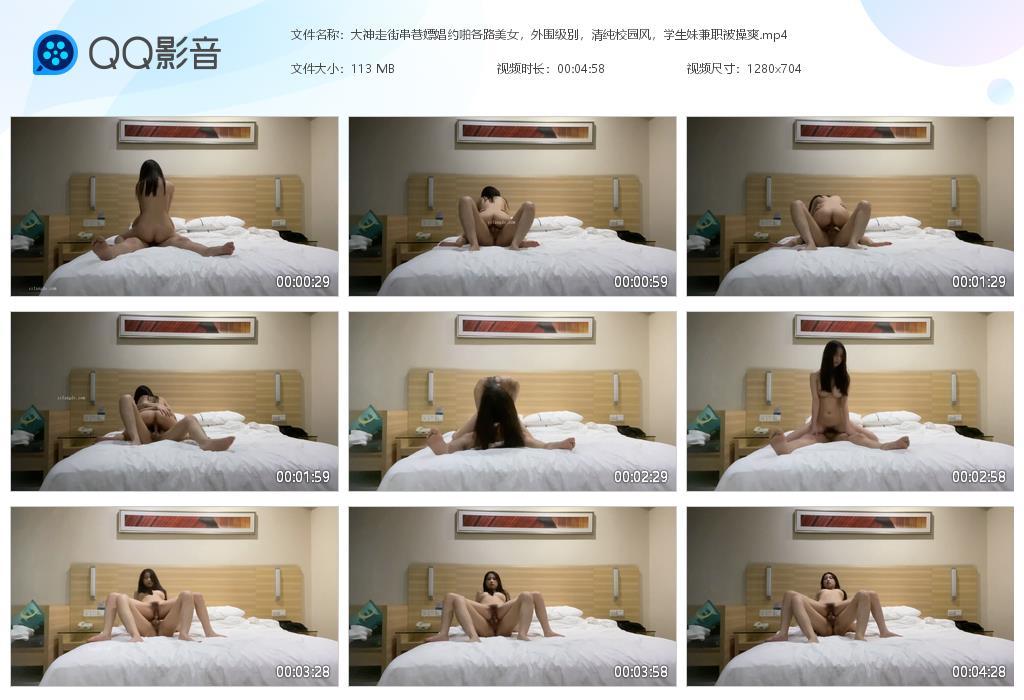 大神走街串巷嫖娼约啪各路美女,外围级别,清纯校园风,学生妹兼职被操爽【04:58/RF】