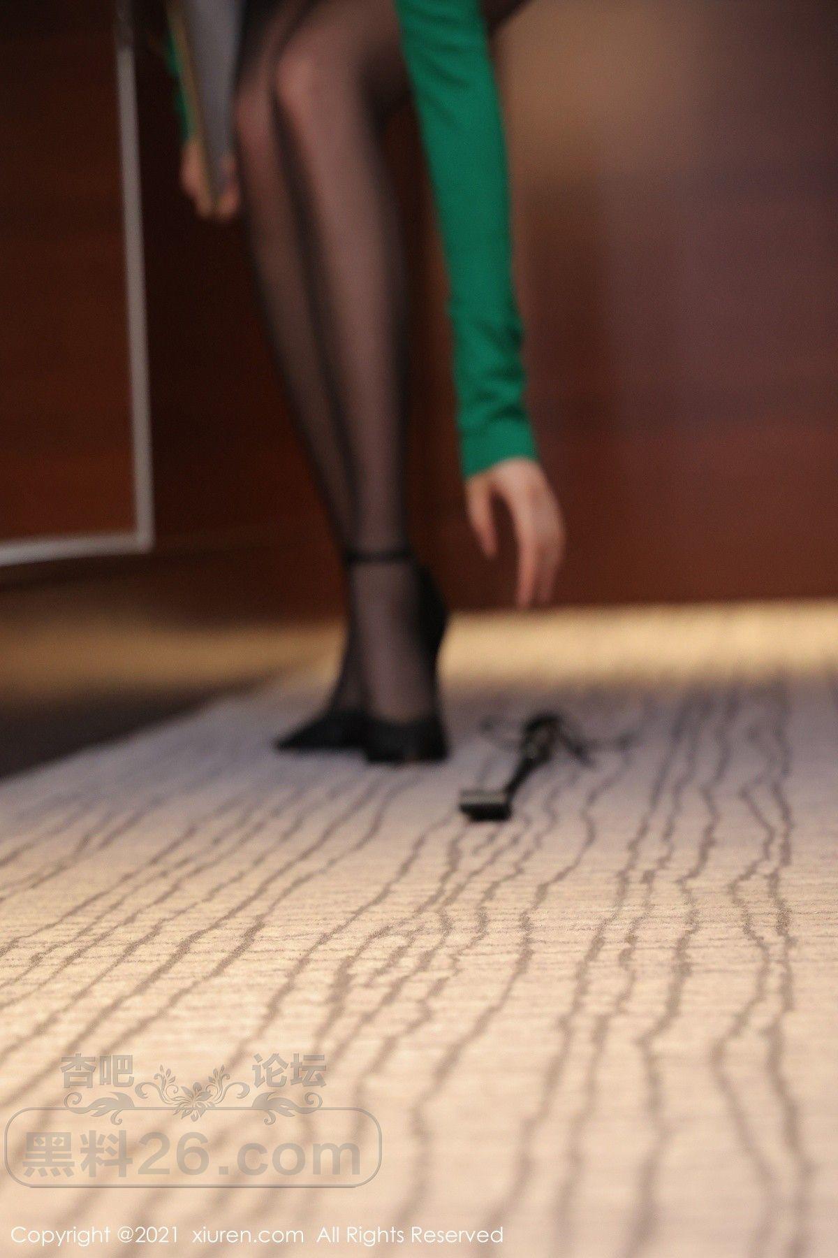 模特月音瞳绿色上衣配黑色超短裙配开档黑丝秀火辣身材诱惑写真【50P】