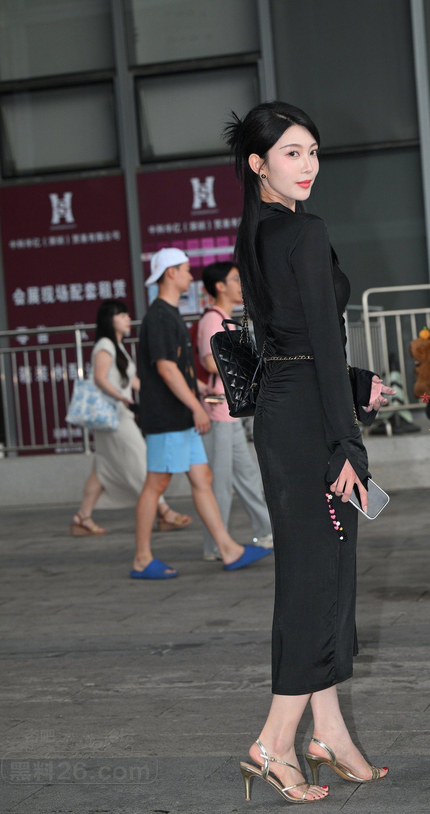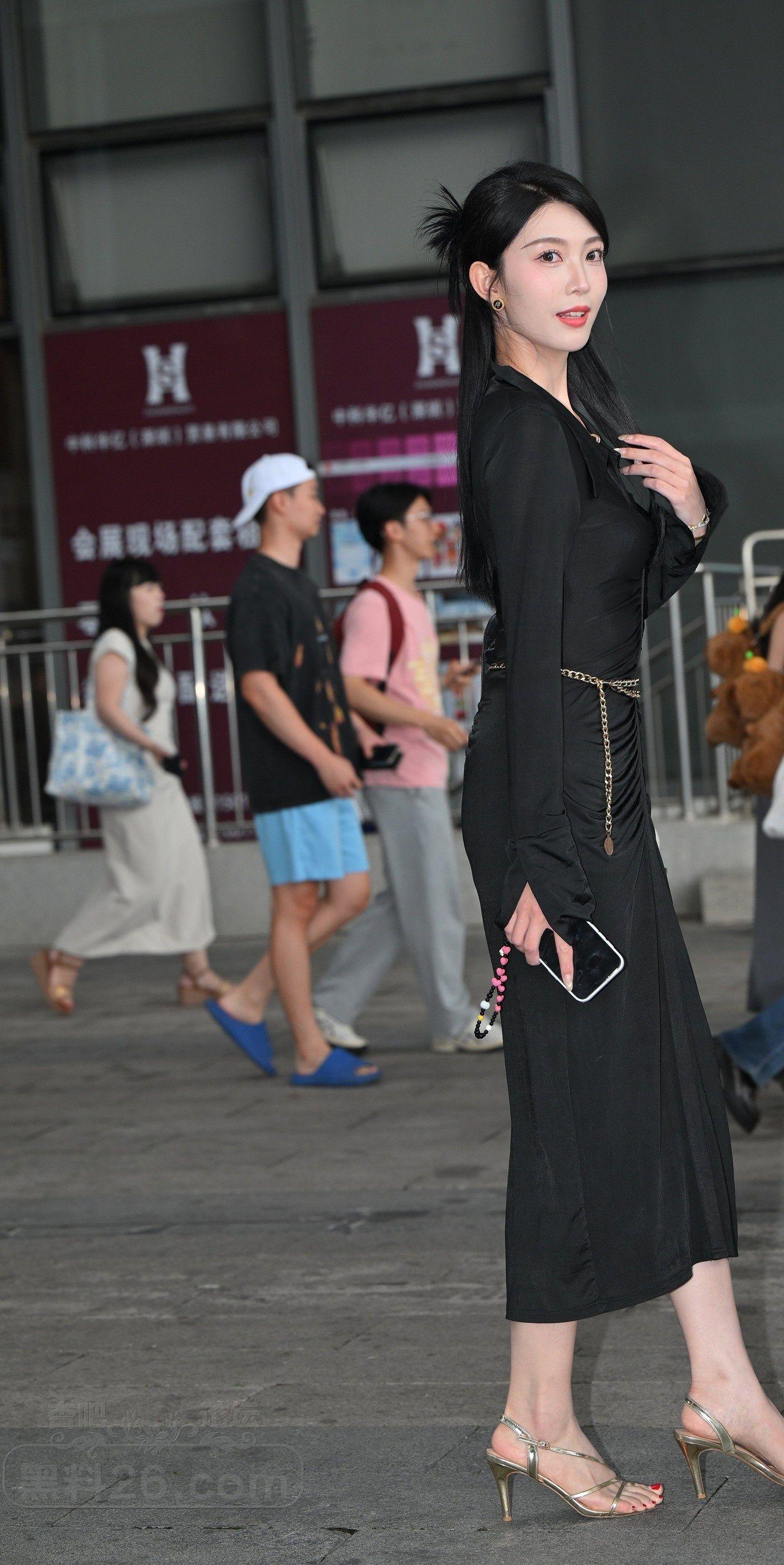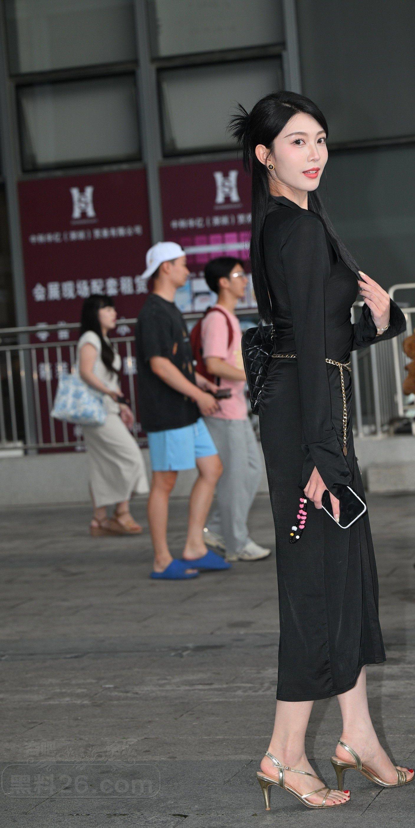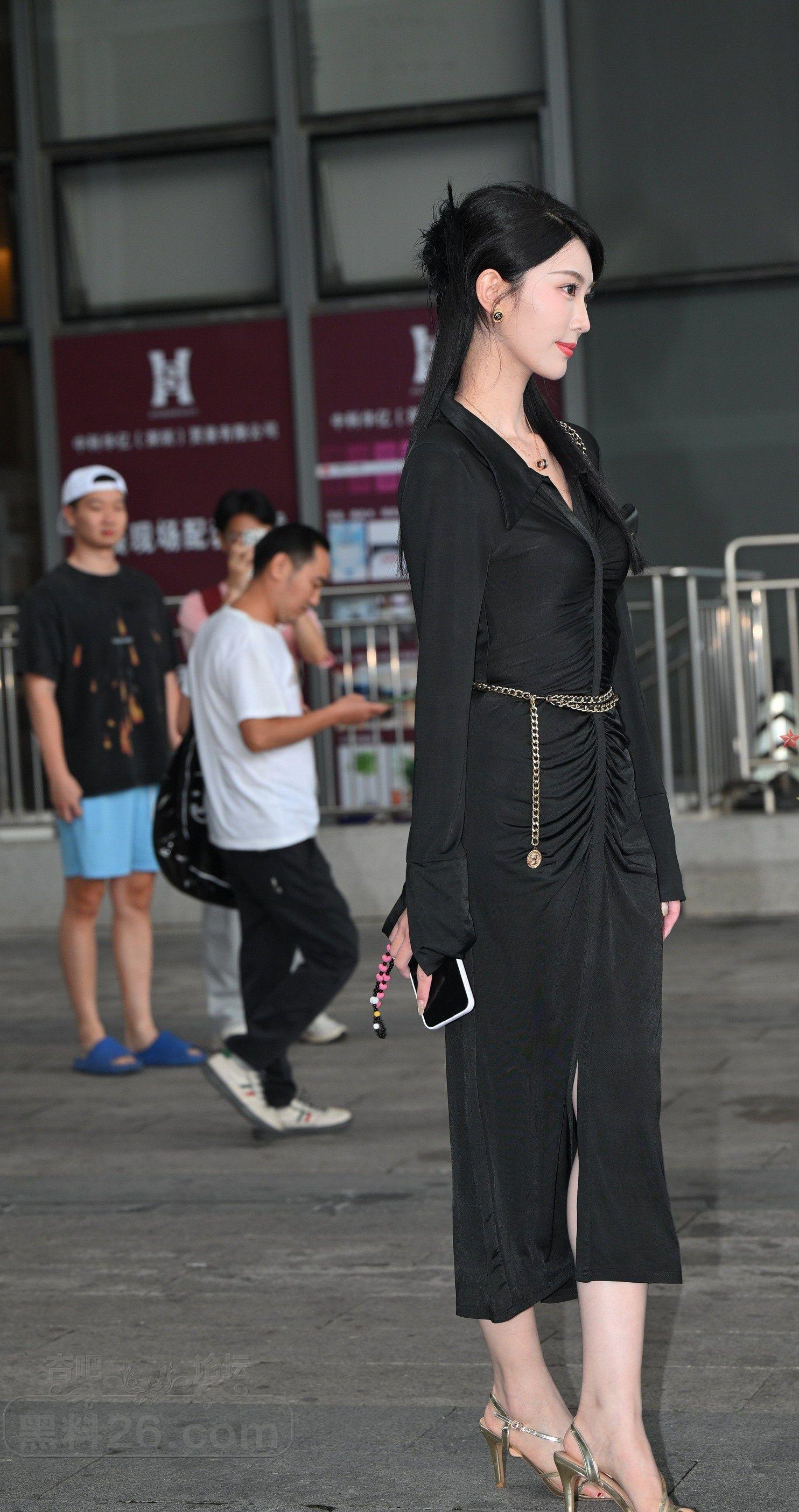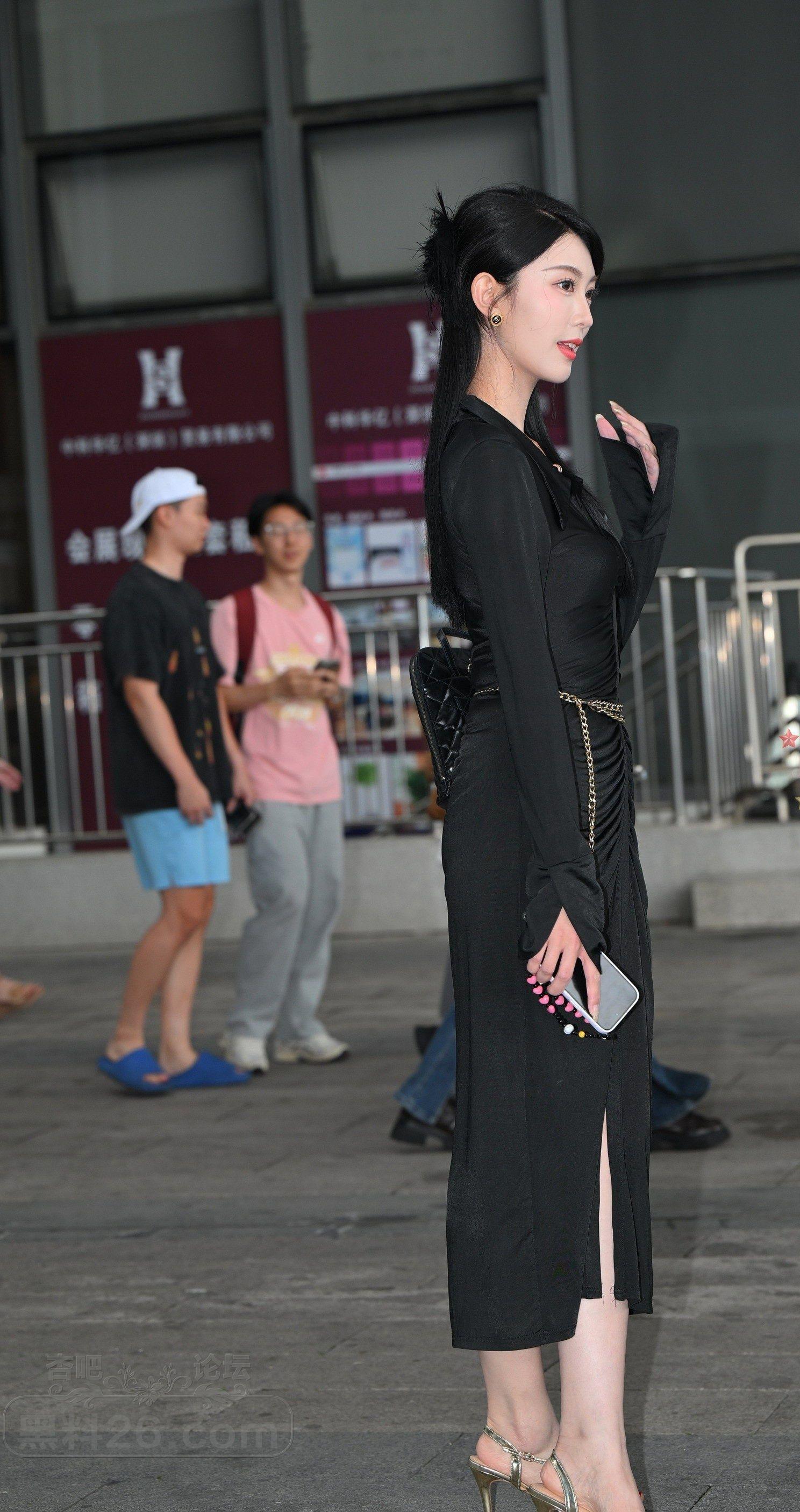 [街拍] 体育场外美女黑色开叉长裙光滑玉腿吸睛【10P】 |