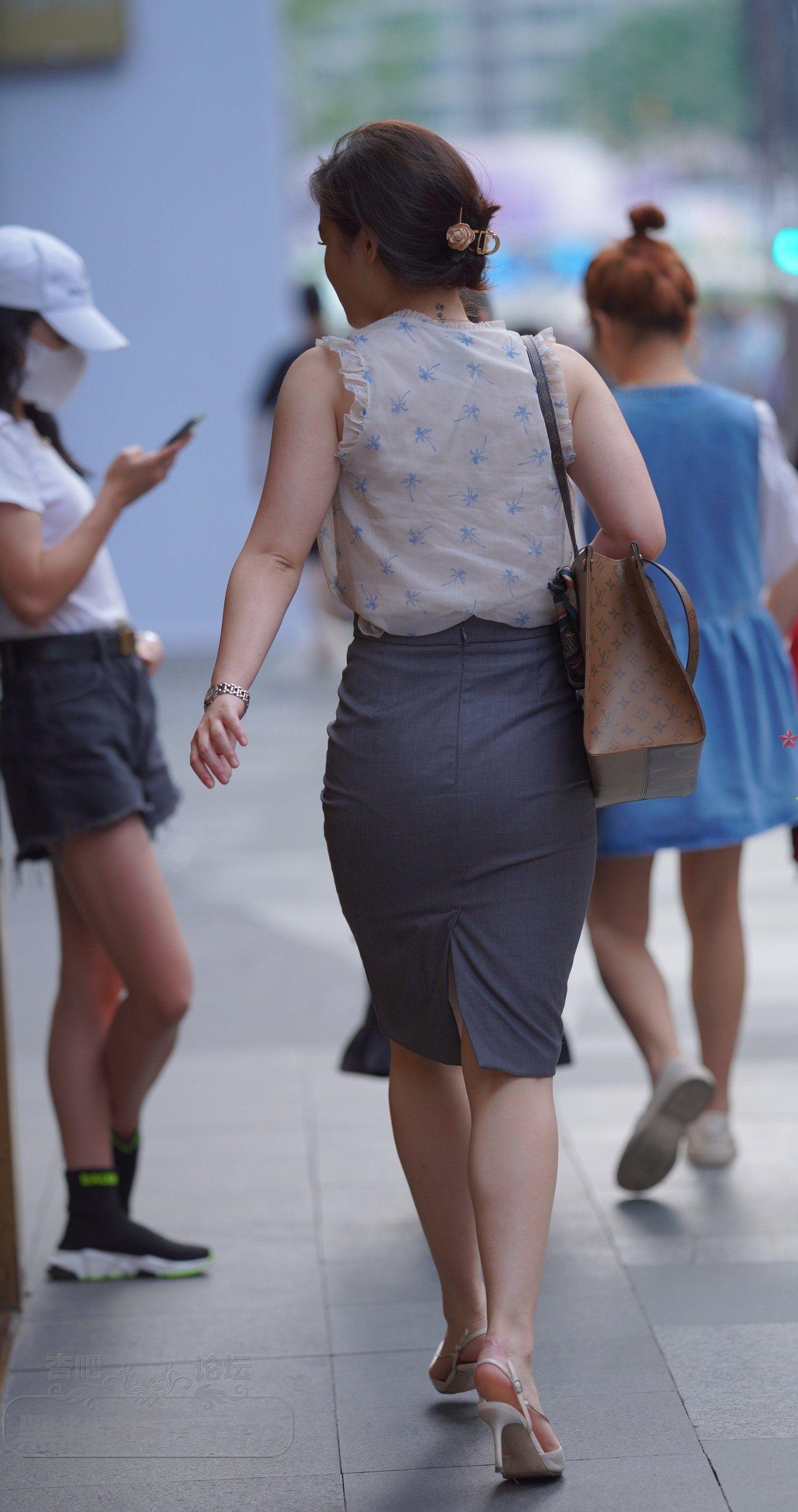 白色背心灰色包臀裙成熟女人街上路过【10P】