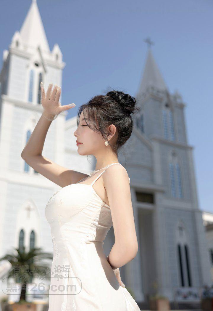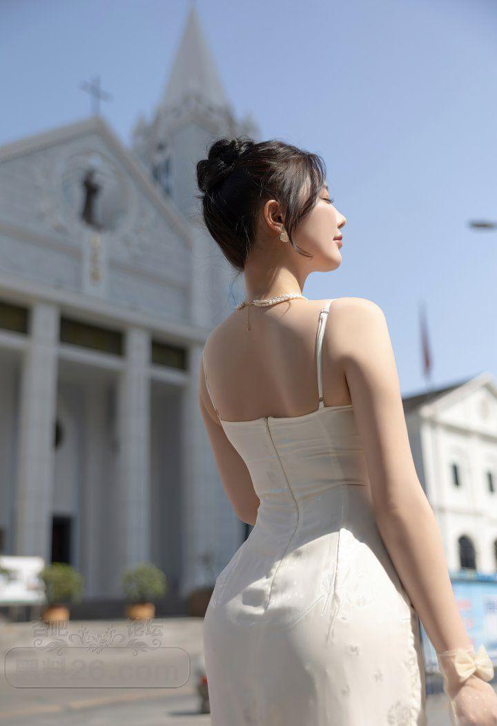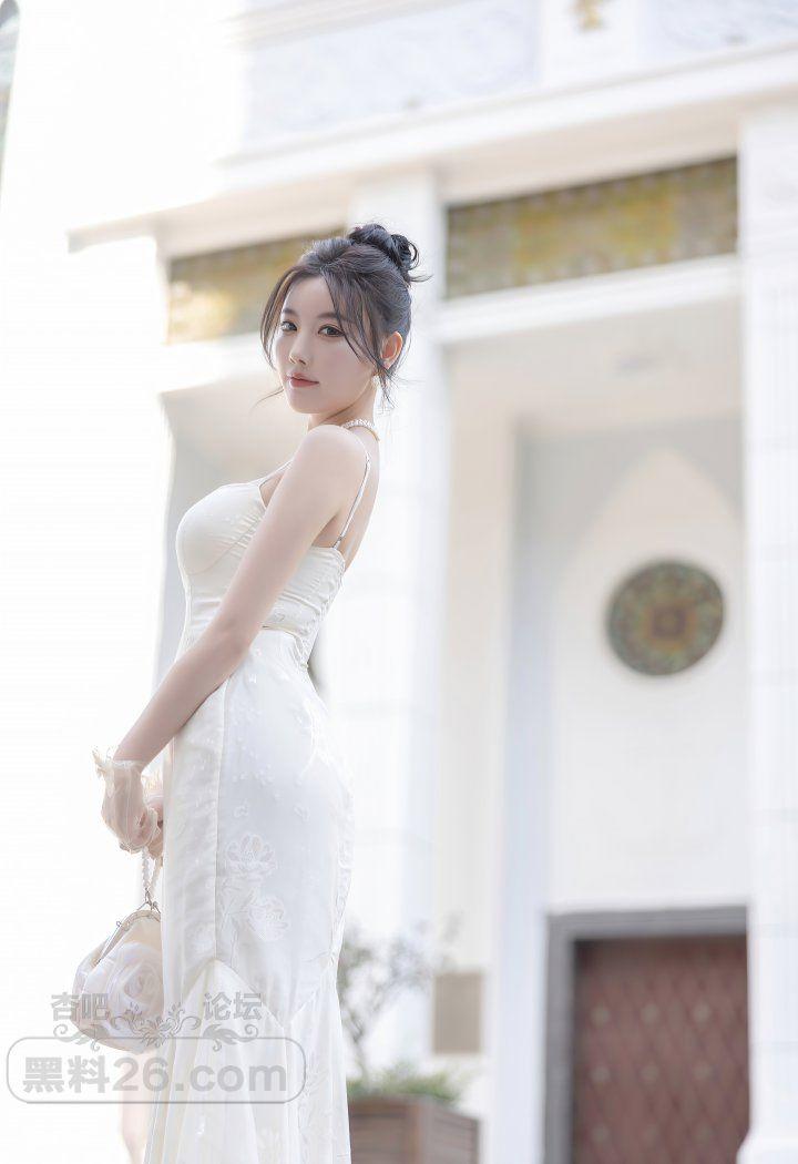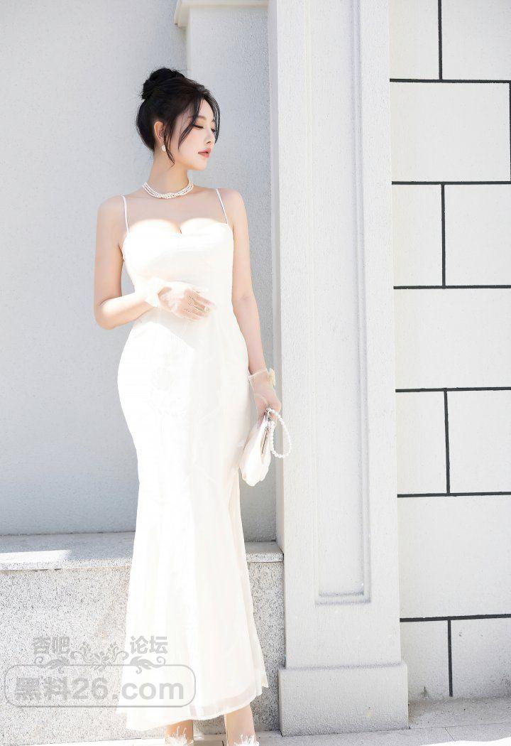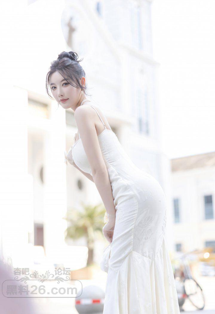 香艳美人杨晨晨户外白色露背吊带裙前凸后翘好身材【20P】