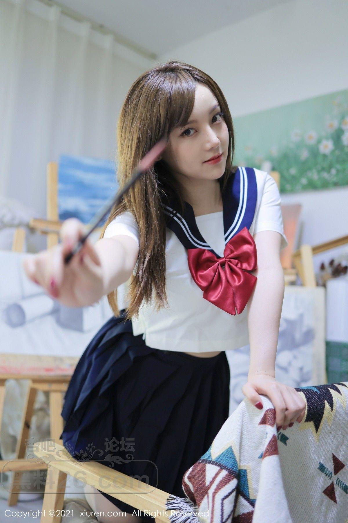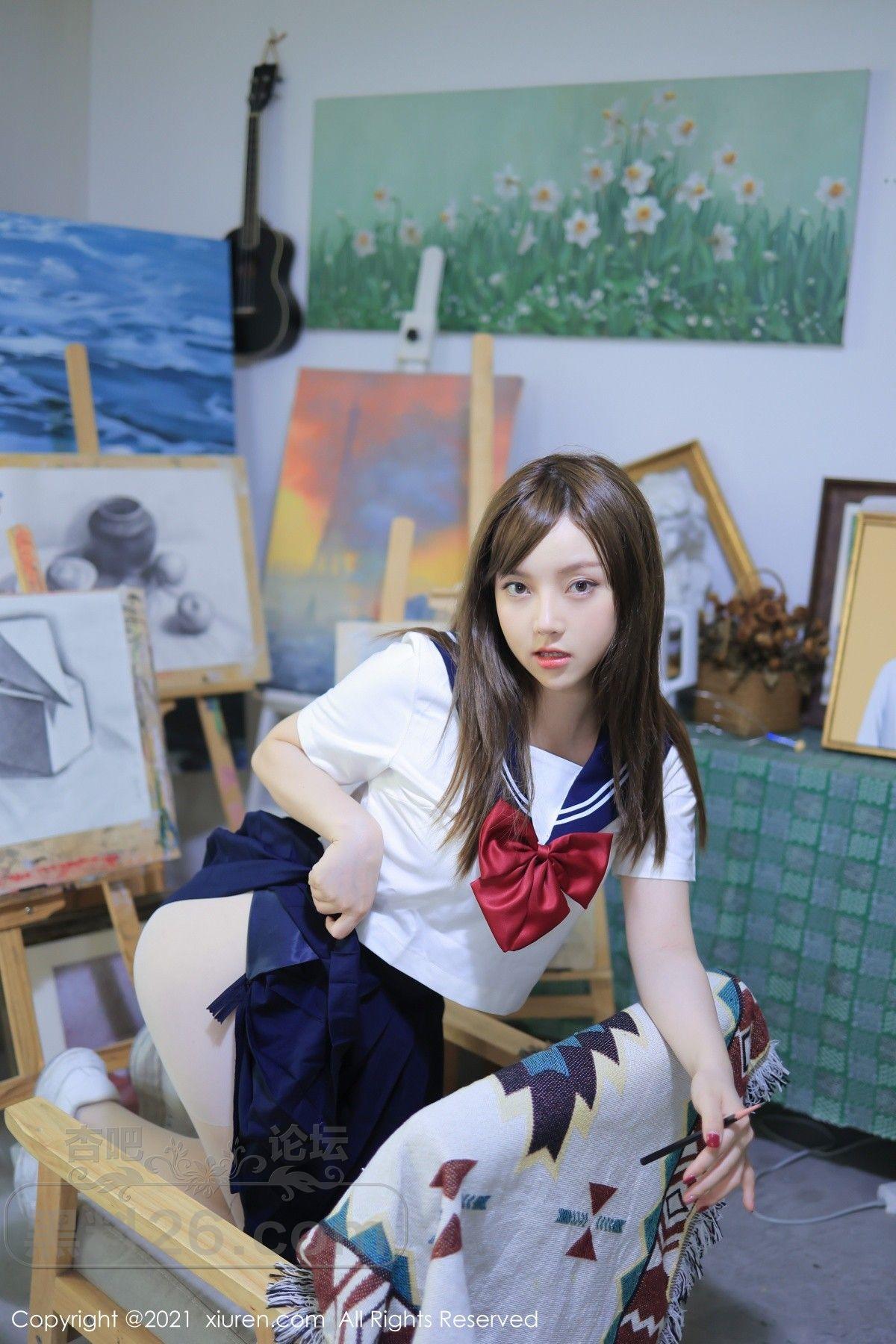 [美腿翘臀] 模特豆瓣酱真实画室场景主题半脱制服露开档白丝完美诱惑写真【41P】 |