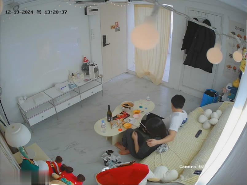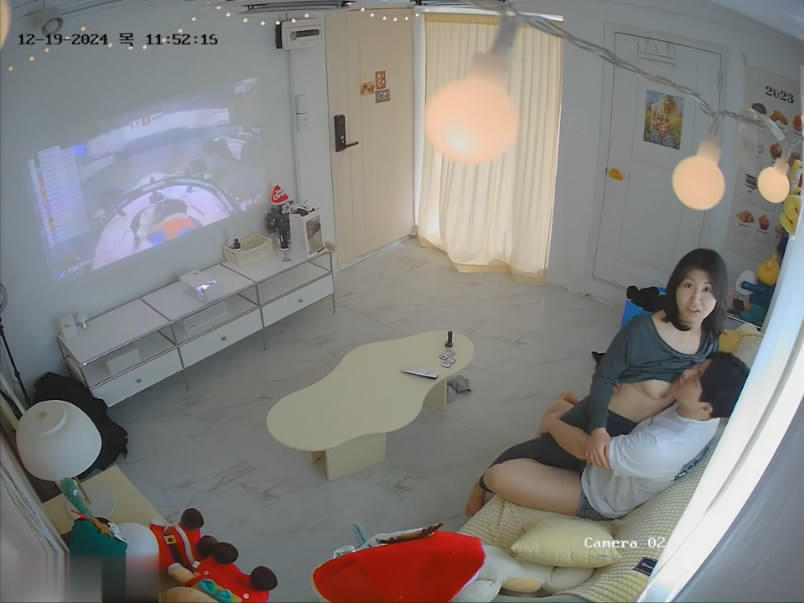 黑客破解家庭网络摄像头TP❤️购物回来的男女迫不及待在沙发上做爱搞完喝酒吃寿司女的很警惕发现摄像头动...