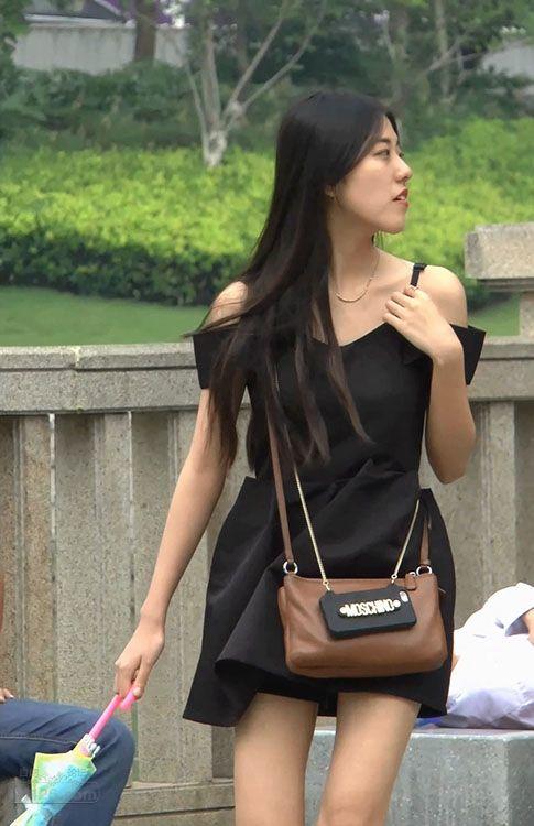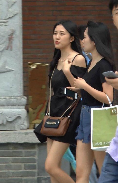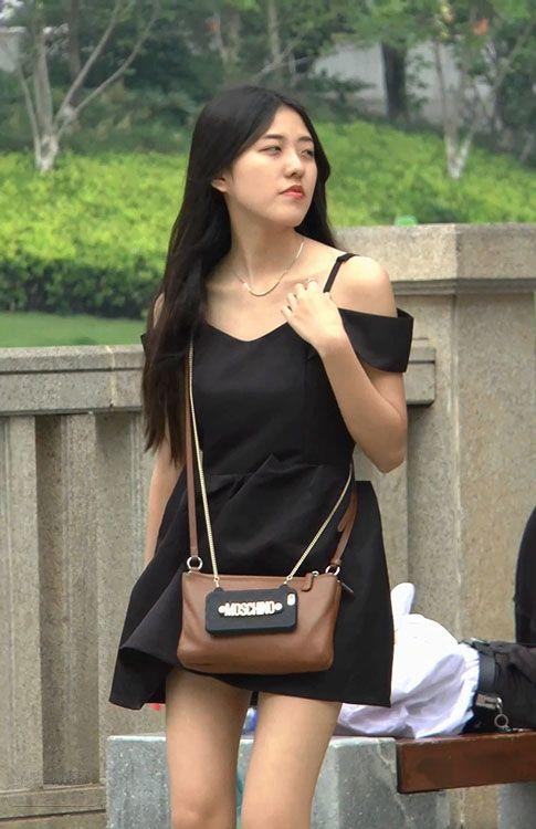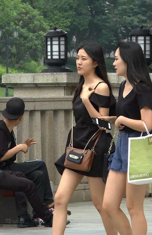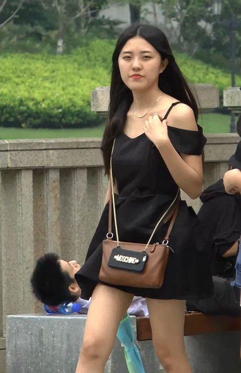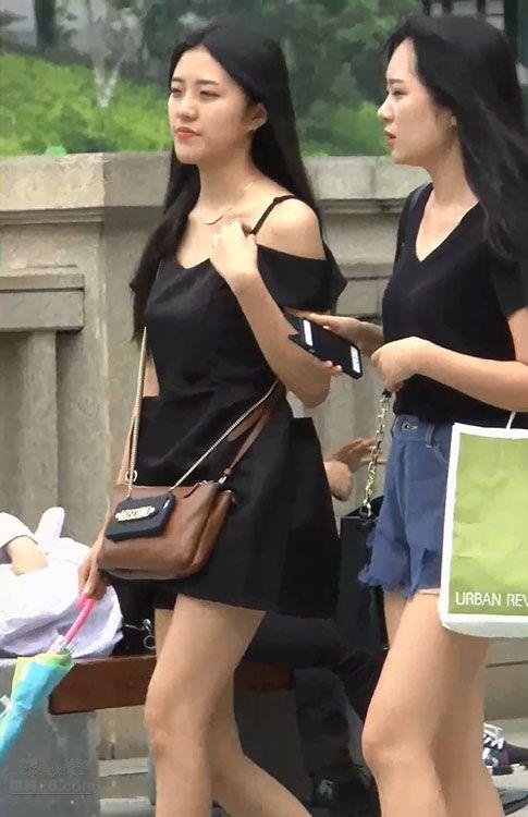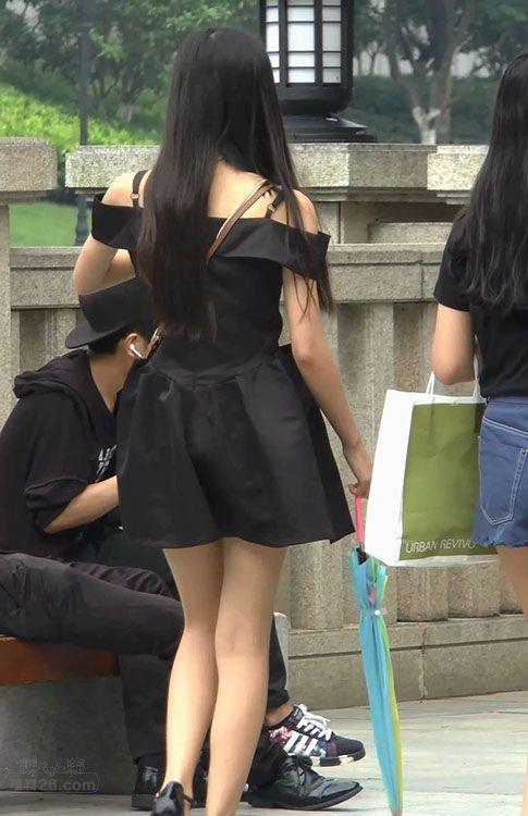街拍非常漂亮的黑色吊带裙美女,肤白腿美身材好【16P】
