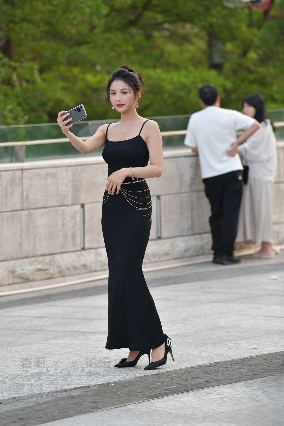 [街拍TP] 甜美靓丽高跟黑色吊带裙小姐姐优雅贵气,尽显苗条身材 【18P】 |